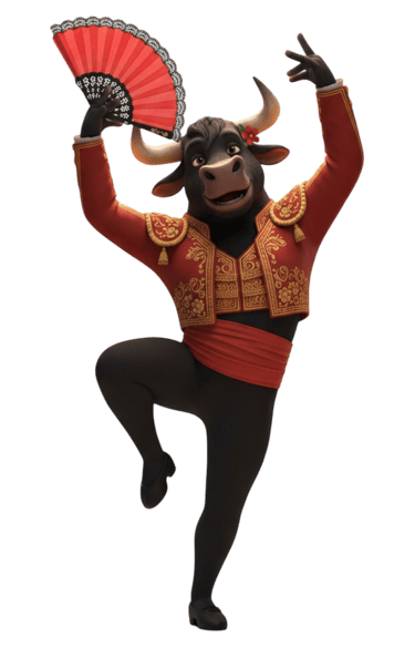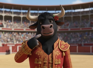The bull is widely regarded as Spain’s national animal, symbolizing strength, courage, and independence. Bulls are integral to Spanish culture and tradition, particularly through bullfighting and the iconic Osborne bull silhouettes found throughout the country. Our Bull is called "Torro"! You'll see him everywhere!