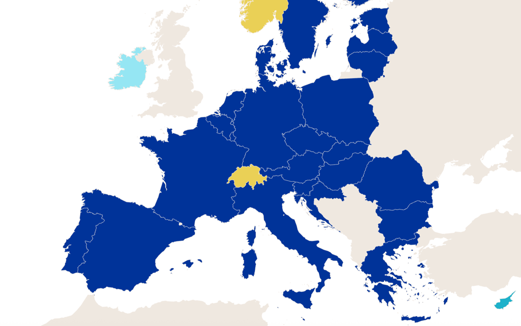 ✅ الدول الأعضاء في الاتحاد الأوروبي في منطقة شنغن: