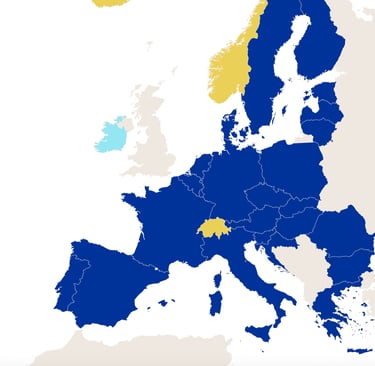 🇪🇺 الدول غير الأعضاء في الاتحاد الأوروبي في منطقة شنغن: